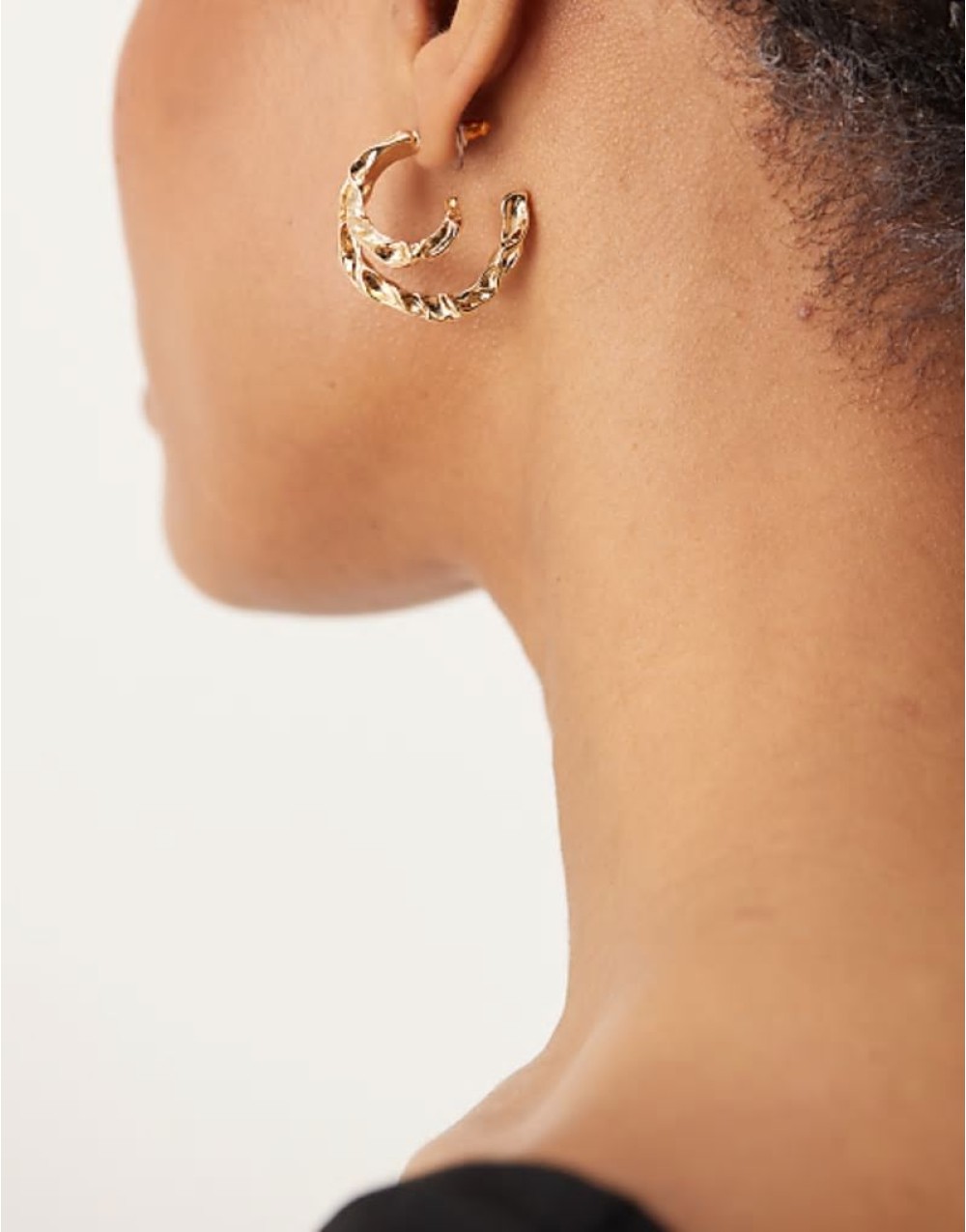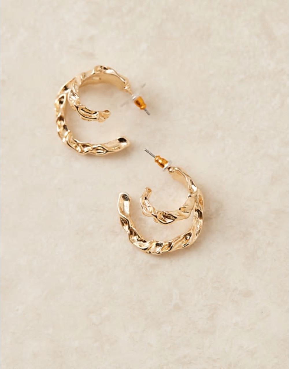 double hoop earrings with molten design in gold tone