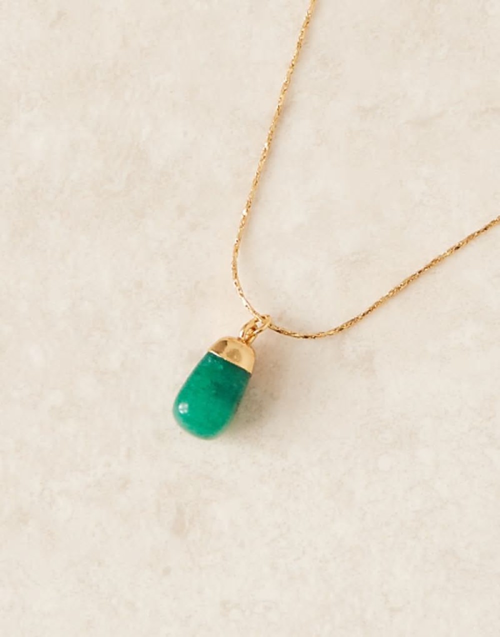 14k gold plated adjustable necklace with green aventurine semi precious pendant