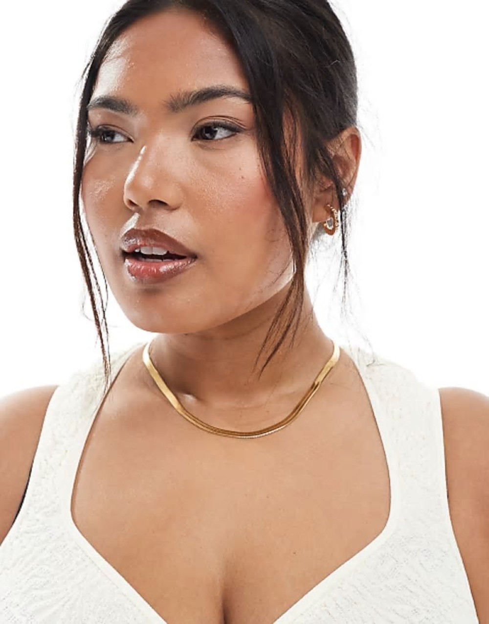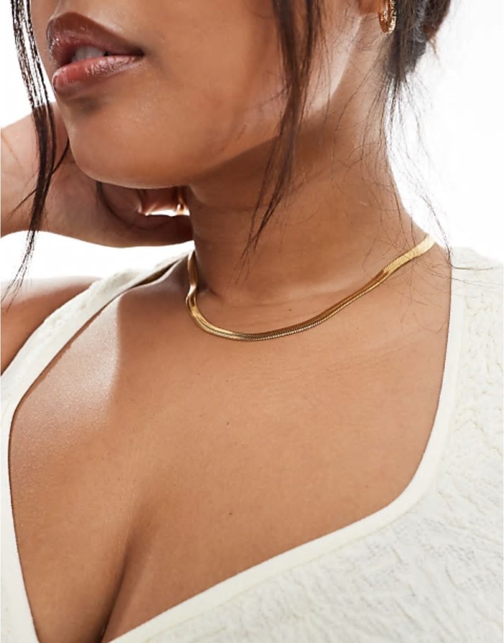 Curve waterproof stainless steel necklace with snake chain detail in gold tone